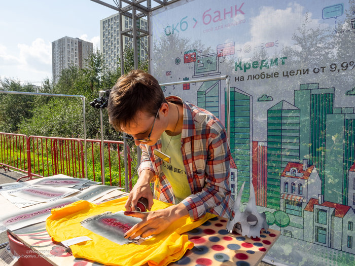 СКБ-банк раздавал горожанам фирменные сувениры и воздушные шарики, а также предлагал футболки с индивидуальным дизайном. Выбранный рисунок наносился на футболку тут же за несколько минут.
