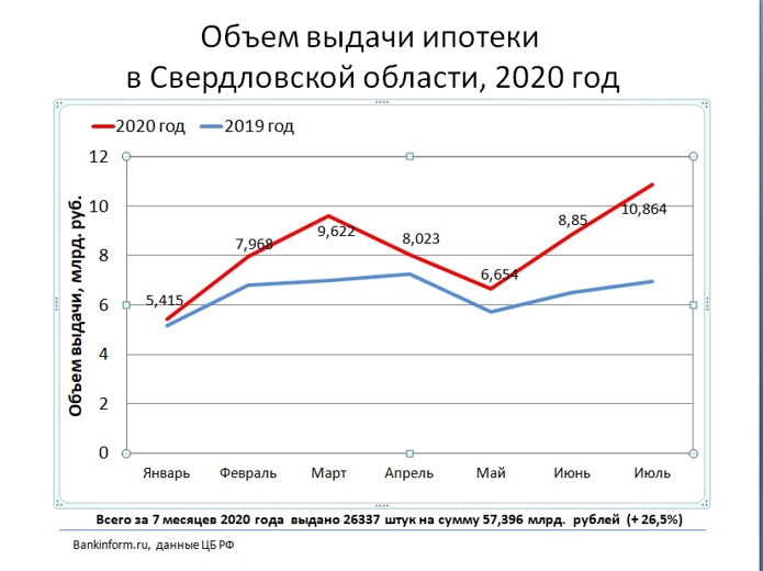 Между тем, Свердловская область, хотя и показала сопоставимый с общероссийским прирост кредитования - 56,3% в годовом выражении, на рекорд не вышла. В регионе в июле выдали 4735 кредитов на 10,86 млрд рублей, что даже по объёму меньше, чем в декабрях 2018 и 2019 годов.