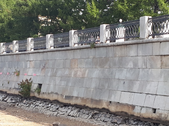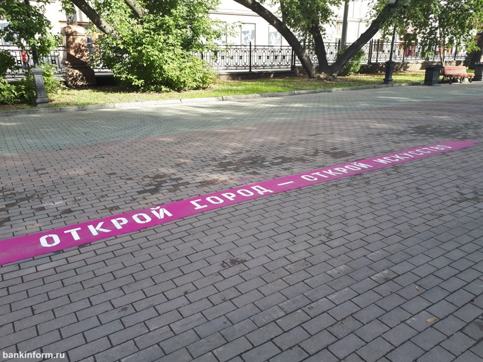 Надпись на фиолетовой линии в сквере на Ленина - Карла-Либкнехта.