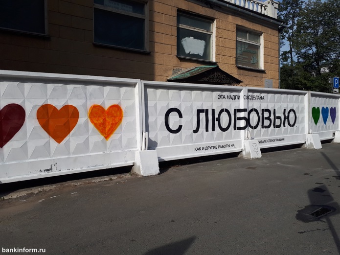 «Эта надпись сделана с любовью» - декоративный объект, доска почёта, ул. Мамина-Сибиряка, 80, за Оперным театром.