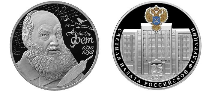 - номиналом 2 рубля: «Поэт А. А. Фет, к 200-летию со дня рождения (05.12.1820)» серии «Выдающиеся личности России», стоимостью 2900 руб.