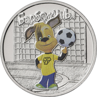 На картинке - последняя монета, выпущенная в России к европейскому футбольному первенству, ещё 2004 года.