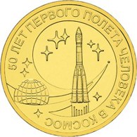 На картинке - недрагоценная монета в честь предыдущего, 50-летнего юбилея гагаринского полёта. Она имела один из крупнейших тиражей - 50 млн экземпляров. У монеты следующего года будет только 1 млн.