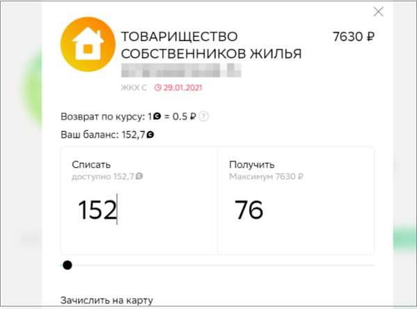 Возможность интересная, но обмен невыгодный. За 152 бонуса (на скриншоте) можно возместить только 76 рублей. На уровне Спасибо реальный кэшбэк получается вдвое меньше. Меняться на купоны «Перекрёстка» выгоднее.