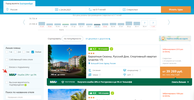 2. Зарегистрировать карту на сайте Ростуризма, а проще - на странице самой акции.3. Далее на сайте Тинькофф Путешествия выбрать тур по России, предварительно поставив соответствующую галочку.