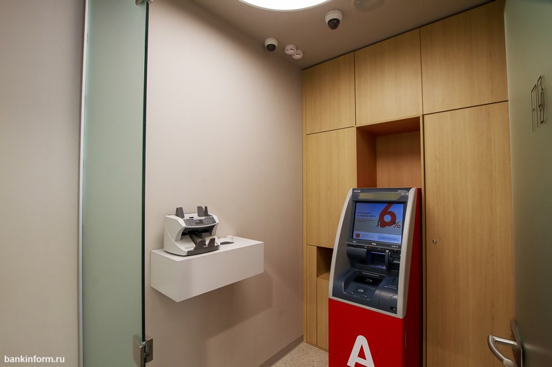 В офисе есть всё для того, чтобы решить любой финансовый вопрос быстро и с удовольствием. Есть банкомат для обыденных операций и отдельная комната самообслуживания с банкоматом и счётной машинкой для тех, кто оперирует крупными суммами.