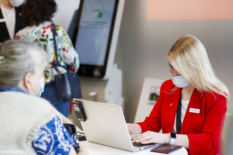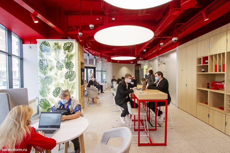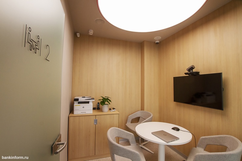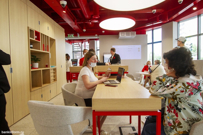 Далее, можно отправиться на самостоятельные поиски менеджера, а можно просто сесть в любом понравившемся месте (благо, выбор удобных мест большой), и менеджер найдёт вас сам. Если на входе система вас распознала, то сотрудник будет уже примерно знать, зачем вы здесь, так как ему будет известен список ваших предыдущих операций.