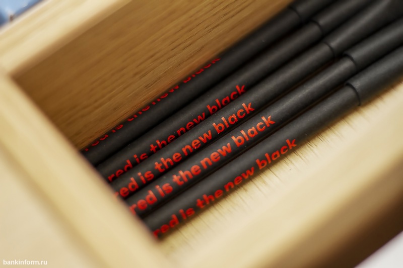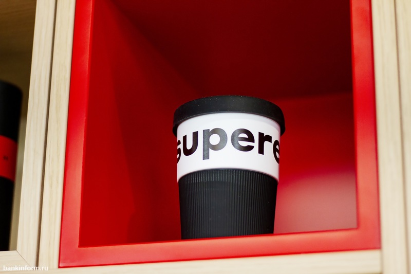 Есть приятная музыка, WI-FI и автомат с кофе (правда, небесплатным). А чего здесь нет, так это навязчивой рекламы, листовок и плакатов (исключая рекламу с Иваном Ургантом на экранах банкоматов). И целая стойка отведена брендовой продукции банка, купить которую можно в специальном интернет-магазине.