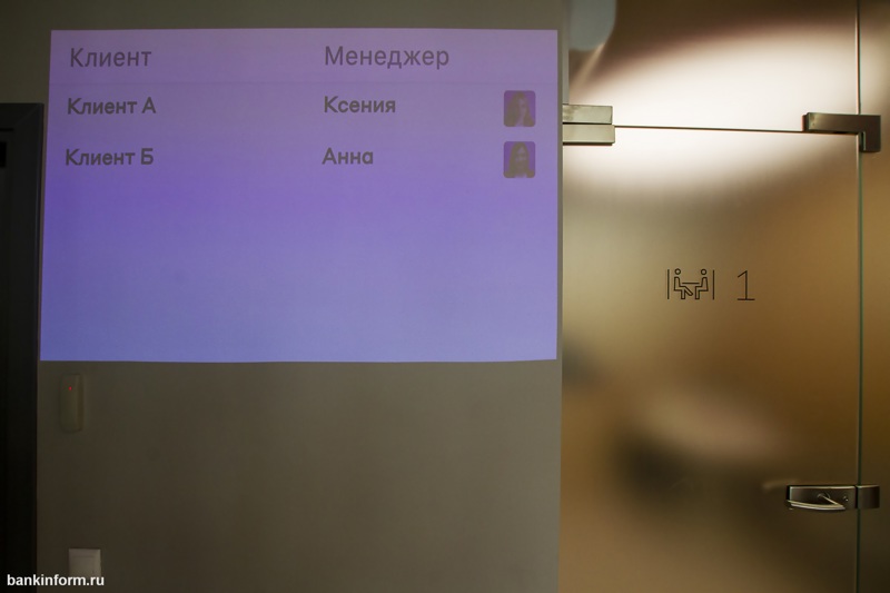 Надо сказать, что банк использует данные своей собственной биометрической системы (клиент может «загрузить лицо» в мобильном приложении банка и там же дать свое согласие на дальнейшее использование биометрических данных). Впрочем, независимо от того, узнает вас система или нет, необходимо подойти к терминалу и записаться на услугу (или через мобильное приложение). Информация о назначенном вам менеджере - имя и маленькое фото - появится на табло.