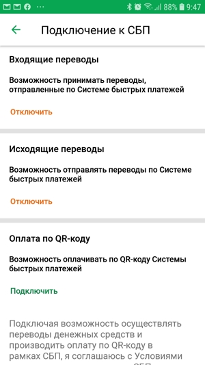 Прежде чем оплачивать покупки по QR-коду через СБП, необходимо убедиться, что эта опция подключена в вашем мобильном приложении. У многих банков она подключается автоматически (например, у ВТБ). В случае СберБанка ее необходимо подключить вручную. Итак, заходим в Настройки - > Система быстрых платежей (подключение) -> Оплата по QR-коду.
