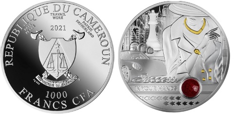 Серебряная монета «Успех в твоих руках. Рубиновый выпуск» 2021 (Камерун) 31.1 г (проба 999)