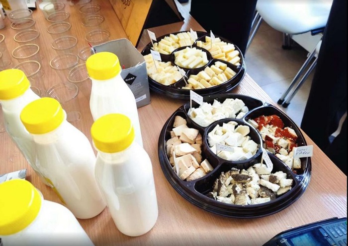 Фермеры из «Никольской слободы» привезли молочную продукцию: кефиры, молоко, сыры, масло и творог собственного производства, а также свежий хлеб.