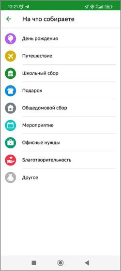 3. Нажимаем виджет Собрать деньги. Если виджета нет, то зелёную иконку в правом нижнем углу + и далее Собрать деньги.
