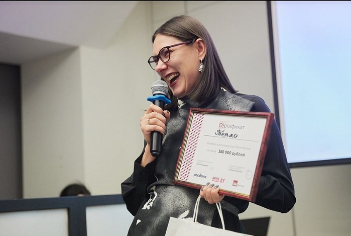 Первое место и денежный грант на развитие бизнеса получил благотворительный магазин «Тепло» Анны Зуевой из Перми. Вся прибыль магазина идёт в поддержку проекта для пострадавших от семейного насилия «Кризисная квартира» НКО «Территория семьи».