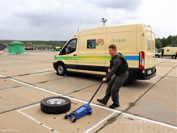 Следующим этапом состязания стала многоуровневая эстафета, где работникам Сбера нужно было проявить различные умения: сменить колесо инкассаторской машины, пройти на автомобиле змейку в условиях задымления, потушить пожар, загрузить банкомат кассетами с деньгами и даже спасти жизнь человеку, оказав первую помощь. И всё это на скорость.