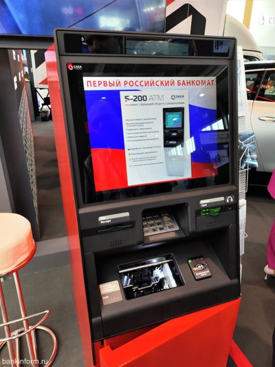 На выставке ИННОПРОМ-2023 представлен первый банкомат российского производства - S-200ATM компании SAGA. На данный момент он является единственным банкоматом, внесённым в реестр отечественной продукции Минпромторга и рекомендованным к использованию Центробанком. «В банкомате используется ряд премиальных элементов и технологий, ранее не применявшихся в мировой практике», - сообщают производители.