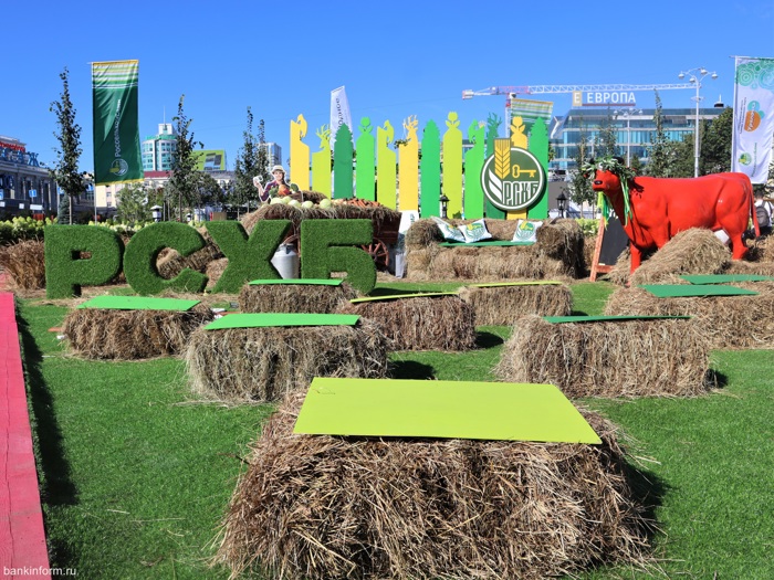 Стенд Россельхозбанка узнать легко. Его название - РСХБ - выполнено большими объёмными буквам из искусственной травы и виднеется издалека.