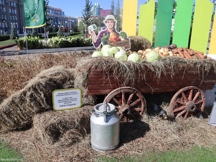 Россельхозбанк в особенности выделяется среди прочего. Главной задумкой было воссоздать уральскую природу, русскую деревню, и это у него получилось. Вместо привычных скамеек - стога сена, на которых можно посидеть и диван, также сделанный из сена. На нём тоже можно отдохнуть. Вместо асфальта - газон из искусственной ярко-зелёной травы и настоящее мини-поле с пушистыми колосьями пшеницы.
