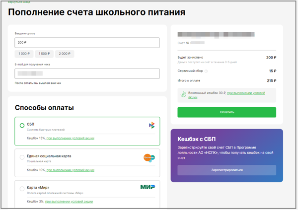 - через СБП с кэшбэком 15% от суммы платежа. Правила акции.