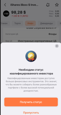 На картинке пример попытки купить зарубежный фонд неквалифицированным инвестором: