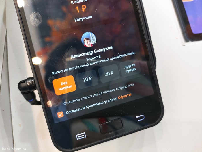 При использовании сервиса «БезКупюр» на экране специального терминала появляется QR-код, карточка официанта и сумма чаевых на выбор (есть опция «без чаевых» - никакого принуждения). Клиент выбирает нужную сумму, считывает смартфоном QR-код и оплачивает заказ с помощью любого банковского приложения.