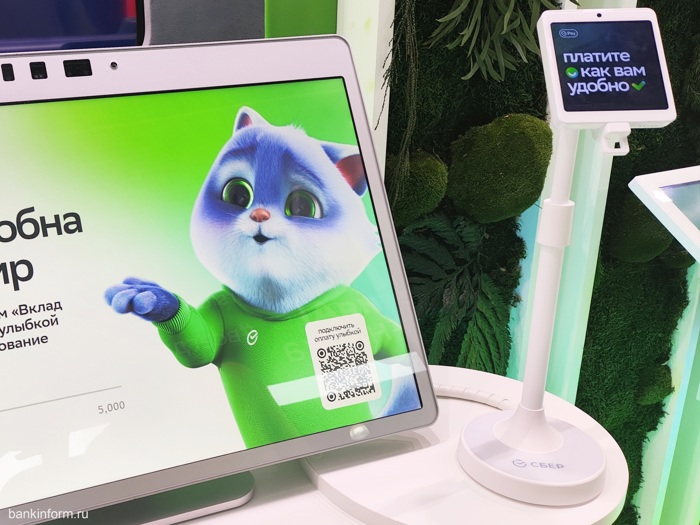 Это уже не банк, но упомянуть стоит. Система быстрых платежей представила на выставке различные способы оплаты, в том числе и NFC-табличку, позволяющую принимать оплату через платежный сервис СБПэй, но без QR-кода. Покупатель открывает мобильное приложение СБПэй, но ничего не сканирует, а жмет кнопку "оплатить по NFC" и просто прикладывает телефон к табличке. Получается быстрее и удобнее. Надеемся, такие таблички скоро появятся во многих магазинах.