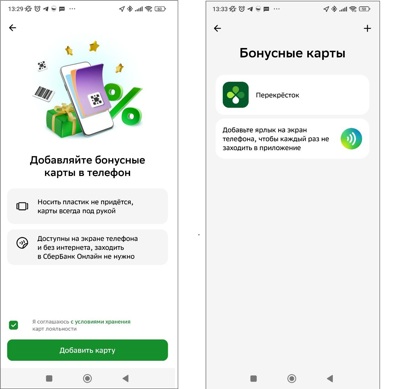 Ярлык с бонусными картами можно добавить на главный экран смарфтона. Карты доступны без интернета. При их использовании не нужно загружать мобильное приложение Сбера.