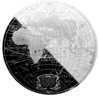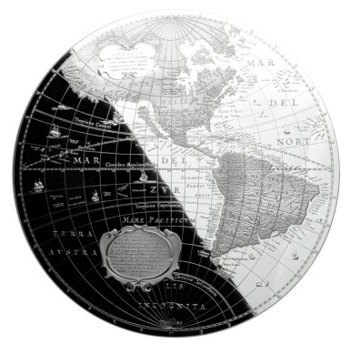 На монетах воссоздана карта восточного и западного полушарий 1630 года картографа Хендрика Хондиуса. С помощью тонкой лазерной микрогравировки мелким текстом и штриховкой в монеты включены топографические знаки, обозначающие сотни мест.