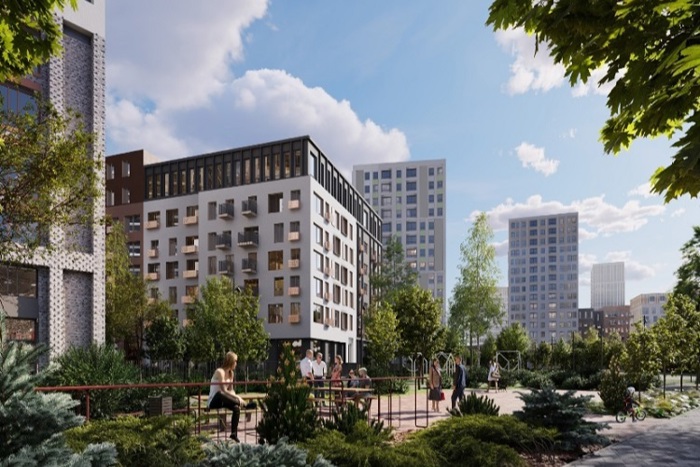 Жилой квартал будет включать детские игровые площадки, зону отдыха с сухим фонтаном, локацию для проведения рабочих встреч и переговоров, а также площадку для воркаута и зону с тренажерами. У жителей квартала будет собственный вход в парк Маяковского через пешеходный мост.