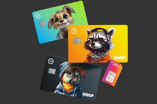 Для клиентов в возрасте от 6 до 13 лет предлагается три варианта детской СберКарты: с енотом, попугаем и собакой, а также детский стикер с изображением енота объёмной формы.