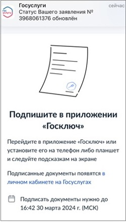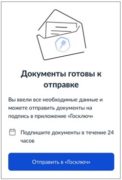 8. После заполнения заявления отправляем его на подпись в приложение «Госключ»: