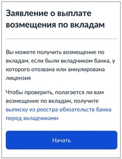 Условия для подачи онлайн-заявления о выплате возмещения по вкладам: