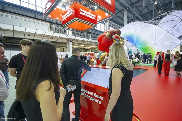 На стенде клиентские менеджеры рассказывают о банковских продуктах для физлиц,