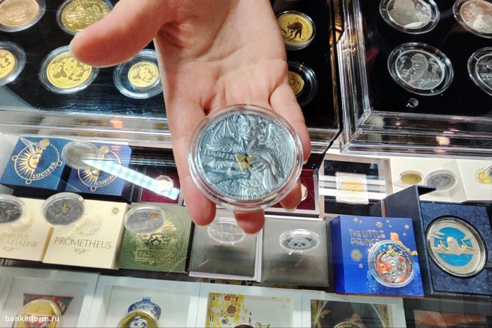 На Иннопром-2024 «Золотая плата» привезла порядка 200 монет, и это лишь часть имеющегося ассортимента. В витрине были представлены цветные памятные монеты, являющие собой настоящие произведения искусства. Здесь можно было увидеть монеты, посвящённые шедеврам живописи, «Маленькому принцу» Сент-Экзепюри или юбилею первого полёта братьев Райт – в последнем случае у самолёта, изображённого на дензнаке, даже крутятся пропеллеры.