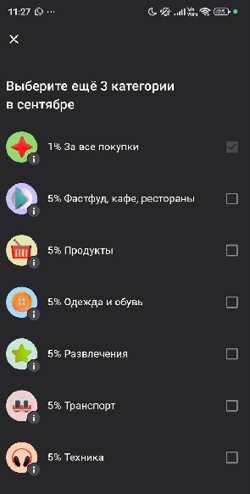Как сообщалось ранее, количество категорий стало меньше на одну. Обычные клиенты теперь могут выбрать 3 категории, включая 1% «на все». Ещё одна категория определяется случайным образом в барабане «Суперкэшбэка». Если категории по выбору и в барабане совпадут, то кэшбэк суммируется.