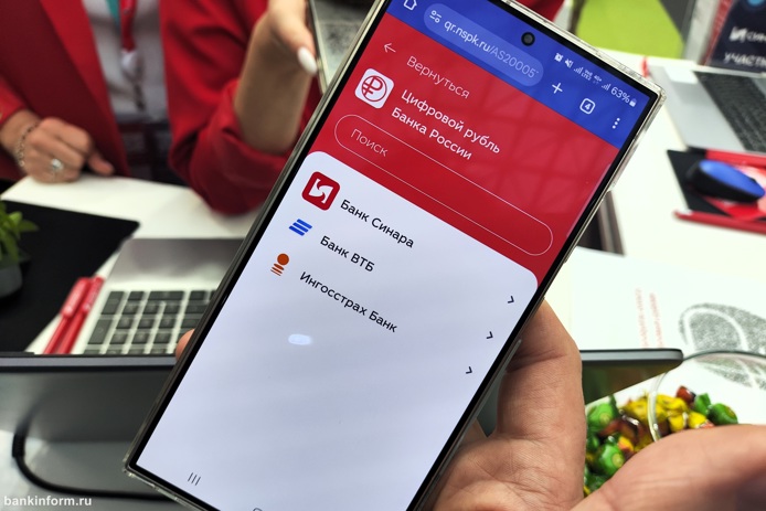 На стенде Банковской группы Синара мы отсканировали универсальный QR-код с помощью камеры телефона. После этого появилась страница с различными способами оплаты, включая СБП, сервис рассрочки и цифровой рубль (доступно участникам пилота с цифровым рублем). Если, к примеру, торговая точка подключена к каким-либо банковским платёжным сервисам, то они также будут отображаться в этом списке. При выборе определённого способа оплаты система запомнит его.