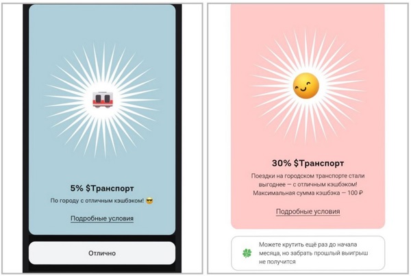 Кэшбэк в барабане может выпасть любой: от 5% до 100%. Лимит кэшбэка зависит от процента, который выпадет в акции, и может составить 100, 150 или 200 рублей.