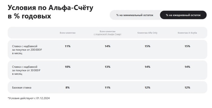 В Альфа-Банке также ставка по накопительным счетам выше для клиентов с подпиской, для членов премиального Клуба и для тех, кто тратит в месяц определенную сумму.