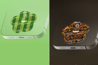 Также к оформлению доступны платёжные стикеры в форме символа O Paper Paper в одном из двух дизайнов - зелёный с полосками и леопардовый. Стоимость такого стикера - 700 рублей: