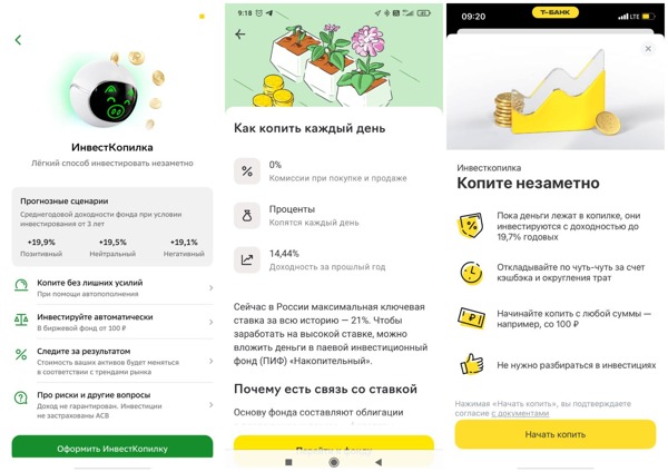 В качестве инструмента накоплений банки все чаще предлагают базовые инвестиционные продукты. Доходность по ним может быть выше, чем по вкладам, но нужно иметь ввиду, что она не гарантированная: банк указывает лишь прогнозные показатели. Вот примеры инвестиционных счетов, которые предлагают Сбер, Т-банк и Райффайзенбанк.