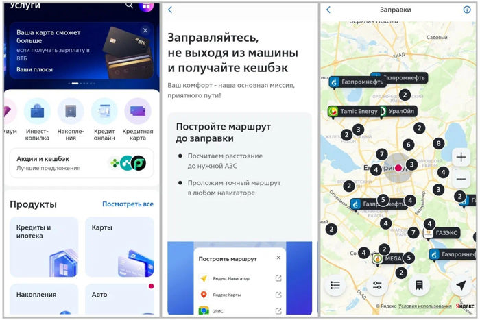 Сервис «Заправки в ВТБ Онлайн» находится в мобильном приложении банка в разделе Услуги -> Продукты -> Авто. Также его можно найти через поиск.