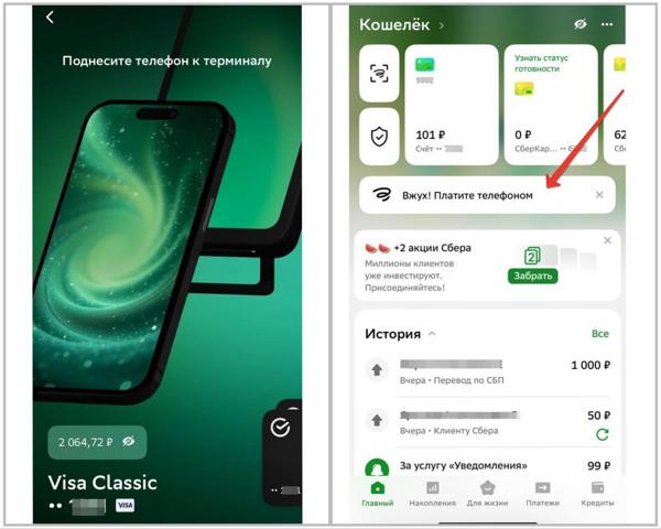 Воспользоваться сервисом можно на новых биометрических терминалах Сбера (без кнопок). При появлении на экране терминала суммы к оплате клиенту необходимо запустить приложение СберБанк Онлайн, поднести смартфон к терминалу и подтвердить платёж. Технология поддерживает оплату картами платёжных систем МИР, Visa, Mastercard, а также работает при отсутствии интернета на смартфоне. За покупки начисляются бонусы Спасибо.