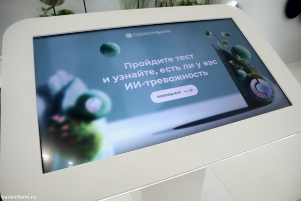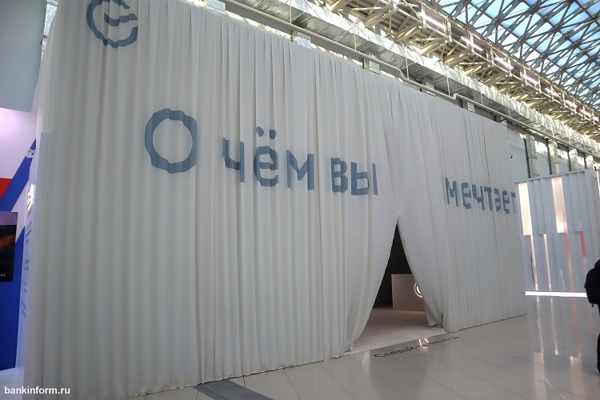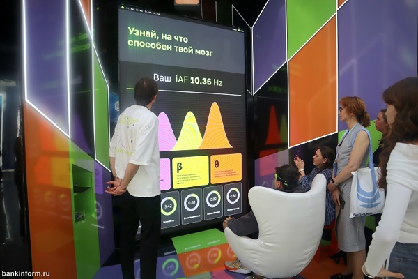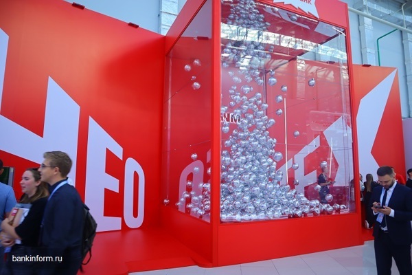 Этот стенд украшает большое красное сердце. И технологии здесь демонстрируют самые инновационные - это и оплата цифровым рублем на кассе самообслуживания и даже оплата кнопочным телефоном (банк научился встраивать банковскую карту в сим-карту).