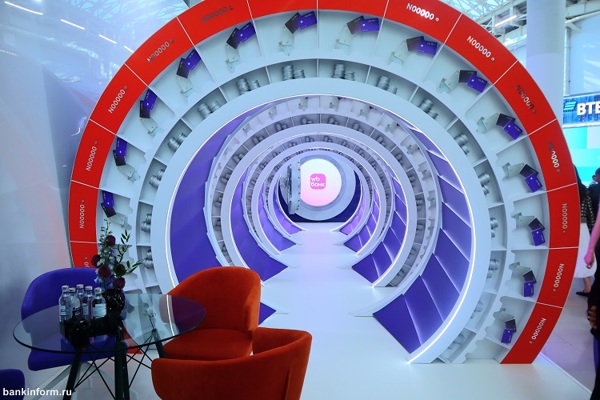 Стенд WB банка привлекает внимание, но угадать что здесь представлено не просто. Как пояснили представители банка, огромные круглые объекты - это монеты, которые "стремятся" в сейв (и как они туда пролезут?). А на монетах расположены карты, терминала и прочие принадлежности сферы платежей.