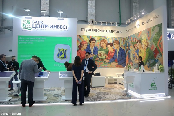 Огромную коровью голову невозможно не заметить. Да и весь стенд выполнен в «коровьем» дизайне. Так Россельхозбанк обыграл недавнюю историю с его мобильным приложением, замаскированным в AppStore под фермерский сервис «Учёт надоя». Подробнее о том, как всё это выглядело, в отдельном материале.