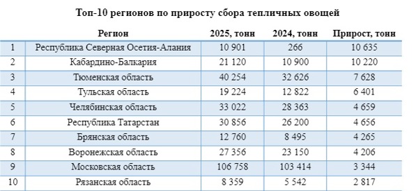 Рейтинг возглавили Северная Осетия – Алания и Кабардино-Балкария. Обе республики стали субъектами, где прирост сбора за 10 месяцев 2025 года к аналогичному периоду прошлого составил более 10 тыс. тонн. Ожидается, что в ближайшие годы уровень самообеспеченности овощами в России превысит текущий порог Доктрины продовольственной безопасности, который составляет 90%, в том числе за счет проектов защищенного грунта. Об этом сообщила заместитель руководителя Центра отраслевой экспертизы Россельхозбанка Ольга Ухалина, - пишет пресс-служба РСХБ.