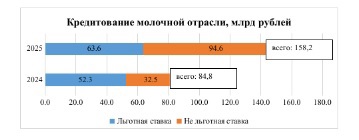 За 10 месяцев 2025 года предприятия по производству и переработке молока получили от Россельхозбанка (РСХБ) кредитную поддержку в размере 158,2 млрд рублей, что на 87% превышает показатель за аналогичный период 2024 года. Об этом сообщила Первый заместитель Председателя Правления РСХБ Ирина Жачкина, - пишет пресс-служба банка.