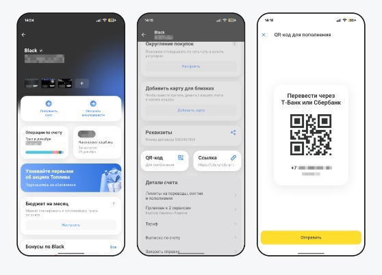 Чтобы создать QR-код или ссылку, например, в мобильном приложении Т-Банка, нужно перейти в детали счета Black, выбрать разделы «QR-код» или «ссылка» и показать изображение QR-кода отправителю или переслать ссылку. QR-код можно показать с экрана или в печатном виде, а также отправить в мессенджеры и соцсети для сбора средств.