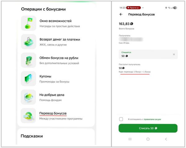Напомним, что в иных случаях перевести бонусы другому клиенту Сбера можно по курсу 1 к 0,85.