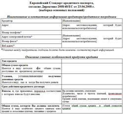 Стандартизированная таблица, в которой собрана вся информация о стоимости займа и его ключевых условиях, практически используется на всей территории Европейского союза с 1 июля 2010 года, согласно Директиве 2008/48/EC от 23 апреля 2008 года о договорах потребительского кредитования. «Положительный европейский опыт даёт возможность и на территории РФ развивать и совершенствовать качество займоотношений, - говорит Евгений Шмелёв. - Так называемая преддоговорная информация будет способствать повышению общей финансовой грамотности населения».